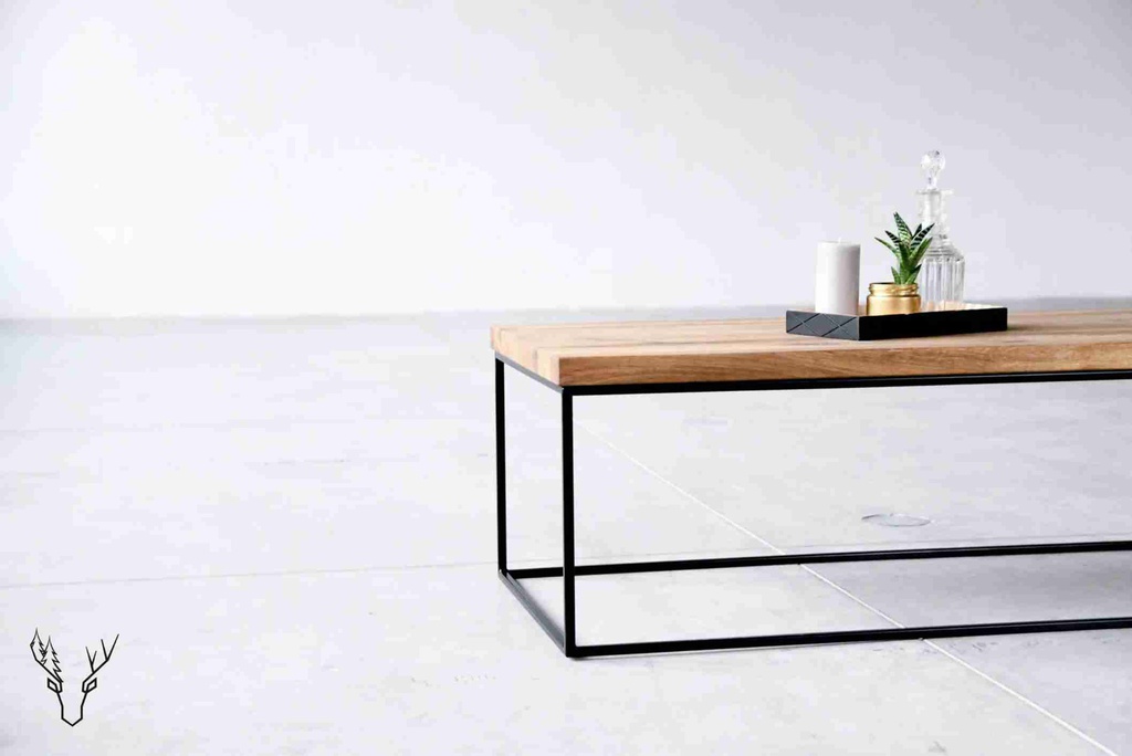 Bàn Trà Gỗ Tần Bì Khung Sắt Dài 120 Rộng 60 Cao 45 (cm)