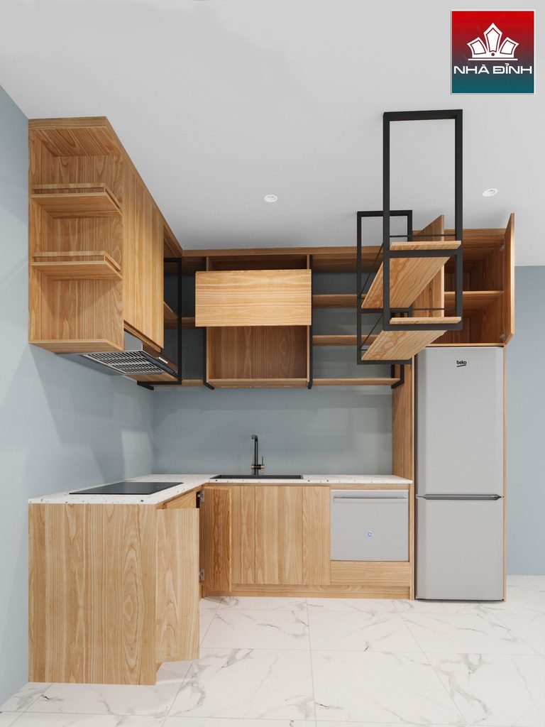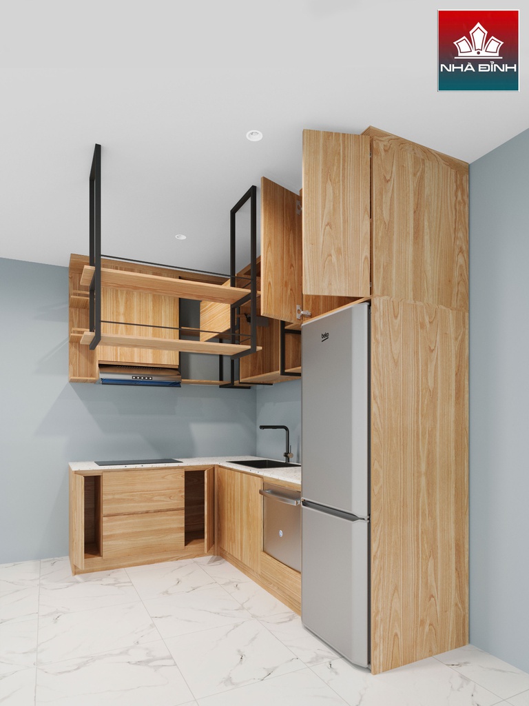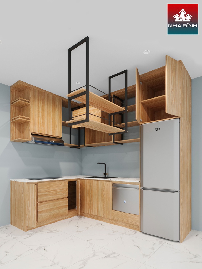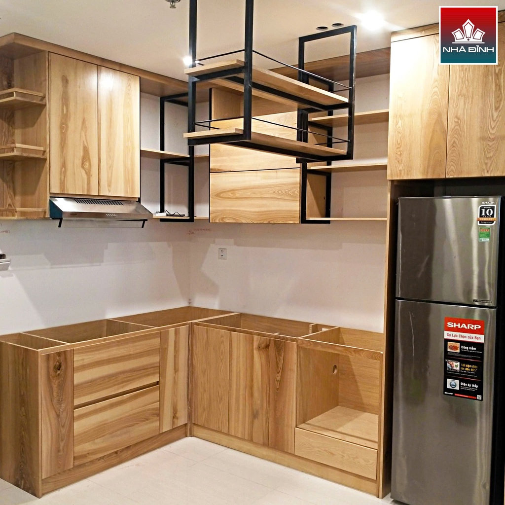 Tủ Bếp Hình Chữ L Gỗ Tần Bì
