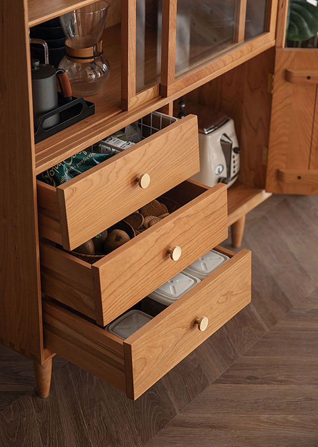Chất liệu: Gỗ Tần Bì (Ash) + Gỗ Cao Su Veneer Sồi + Kính