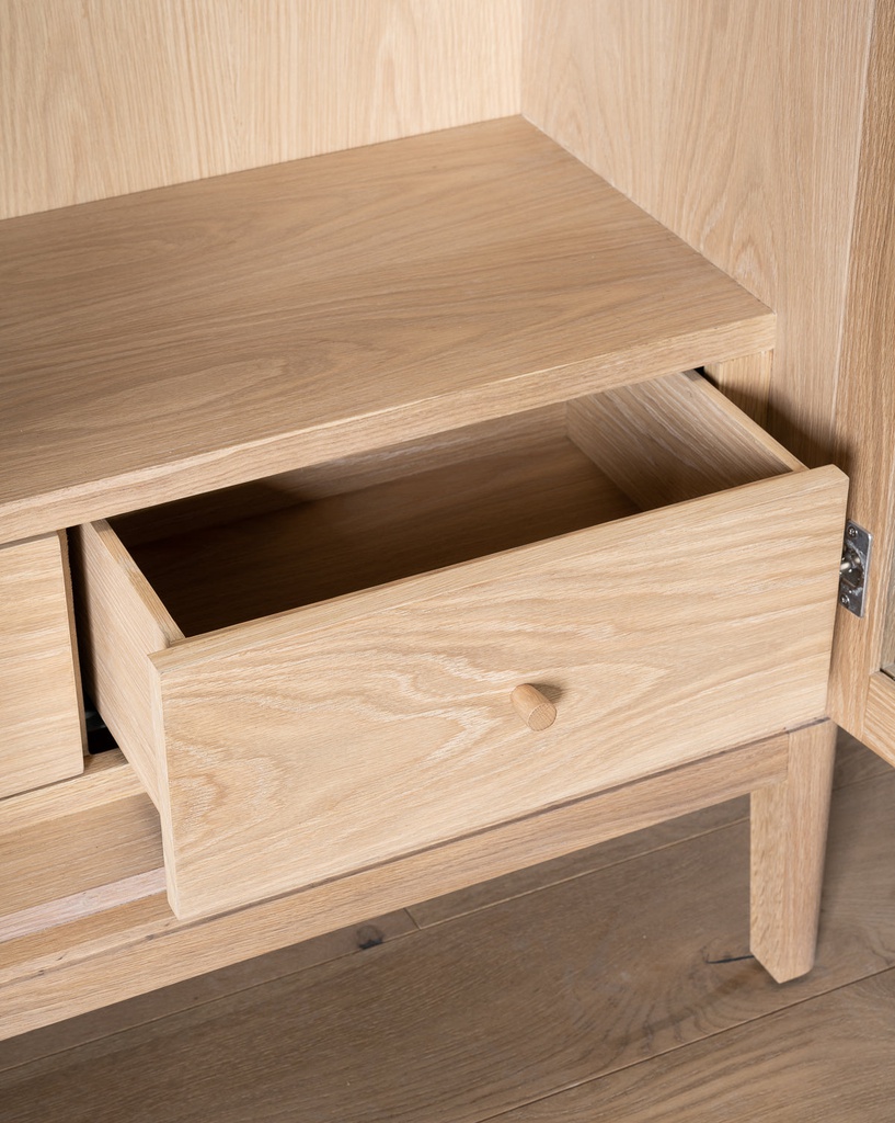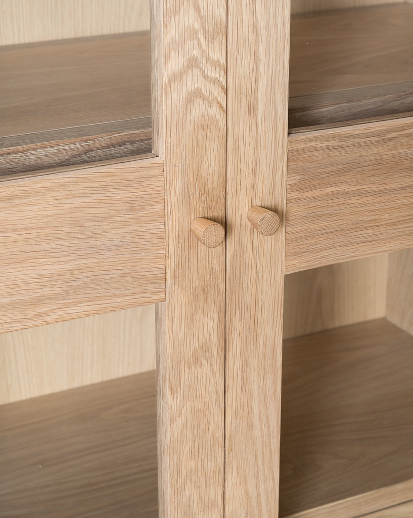 Chất liệu: Gỗ Tần Bì (Ash)_9% + Cao Su Veneer Sồi_91% + Kính