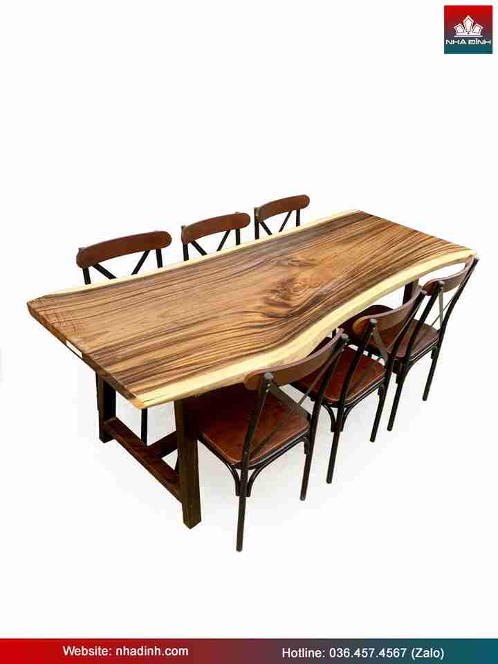 Bàn Ăn 6 Ghế Gỗ Me Tây Nguyên Khối Dài 200 Rộng 79-73-79 Dày 5,2 Cao 75 (cm)