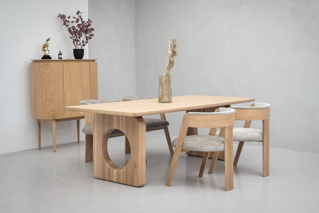 Bàn Ăn Chân Thiết Kế Gỗ Sồi Cao 76 Rộng 100 Dài 221 (cm)