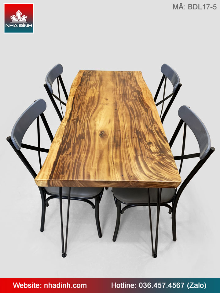 Bàn Ăn Gỗ Me Tây Nguyên Khối dài 1400 rộng 680-610 dày 50 (mm)
