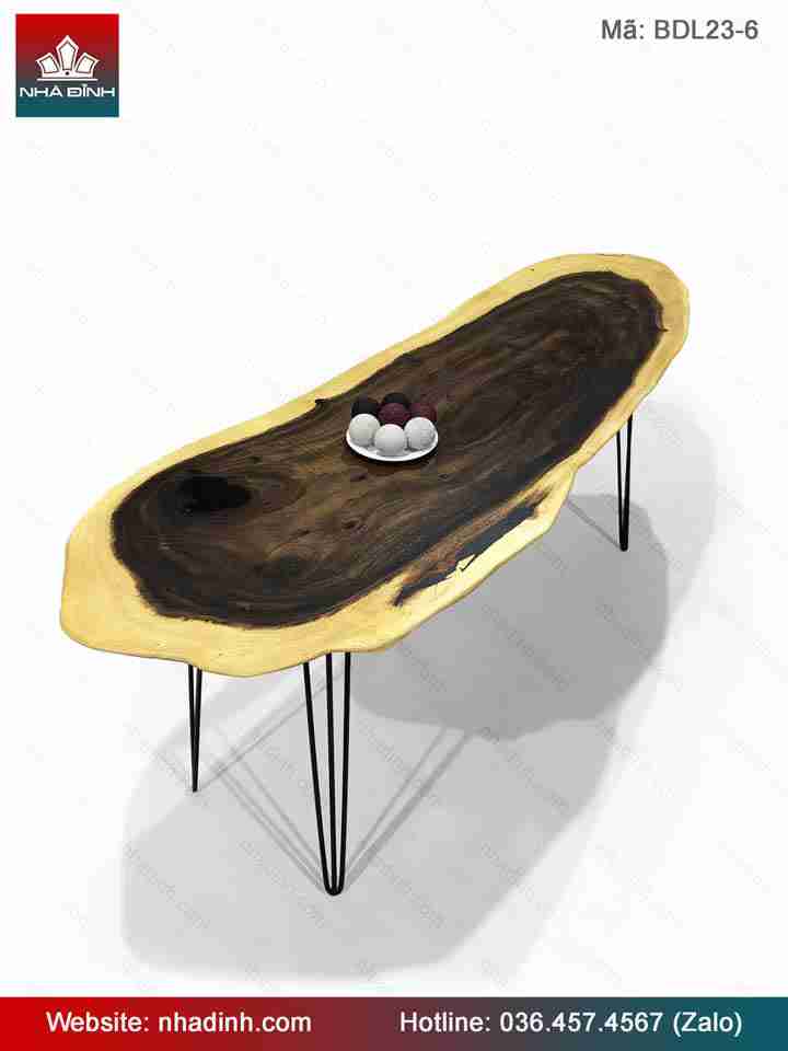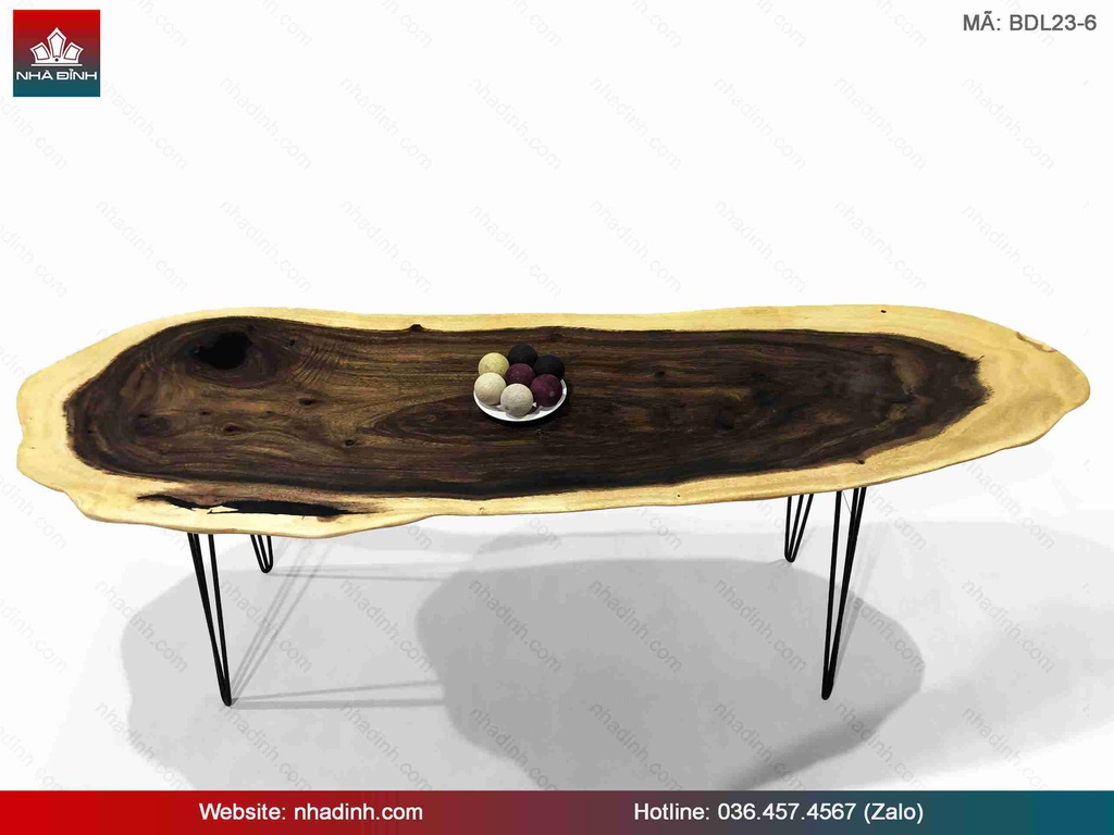 Bàn Ăn Gỗ Me Tây Nguyên Khối Dài 206 Rộng 63-60-50 Dày 5,3 (cm)