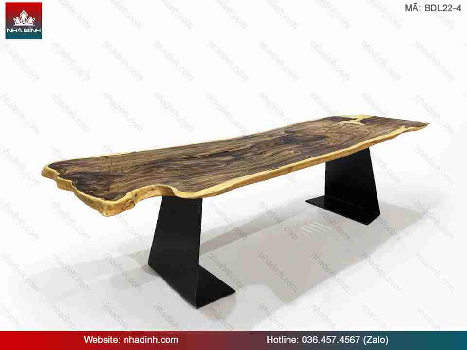 Bàn Ăn Gỗ Me Tây Nguyên Khối Dài 277 Rộng 82-78-93 Mặt Dày 5,6 Cao 75 (cm)