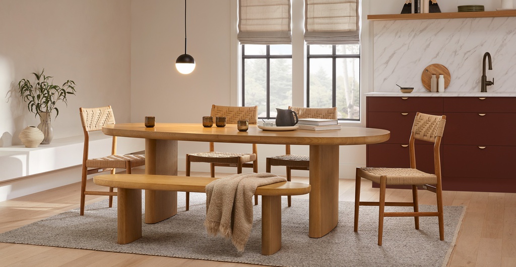 Bàn Ăn Hình Quả Trứng Gỗ Sồi Dài 223 Cao 75 Rộng 54-104 (cm)