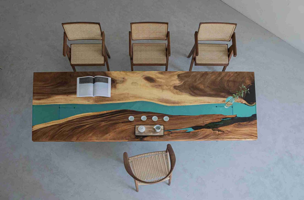 Bàn Làm Việc Đổ Epoxy Gỗ Me Tây Dài 220 Rộng 80 Cao 75 (cm)
