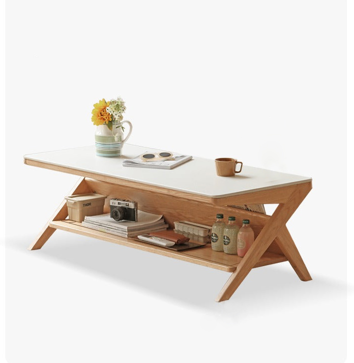 Bàn Trà Gỗ Sồi Kết Hợp Mặt Đá