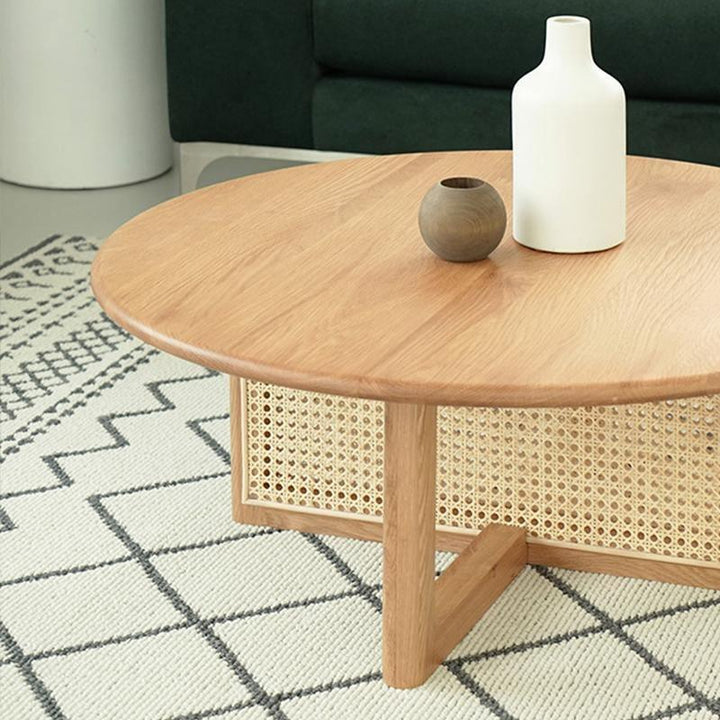 Bàn Trà Tròn Gỗ Sồi Kết Hợp Mây Đường Kính 80 Cao 32 (cm)