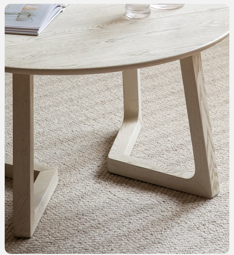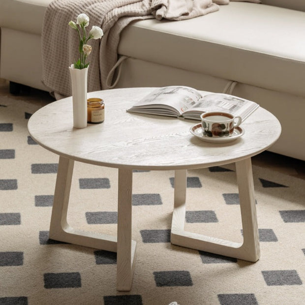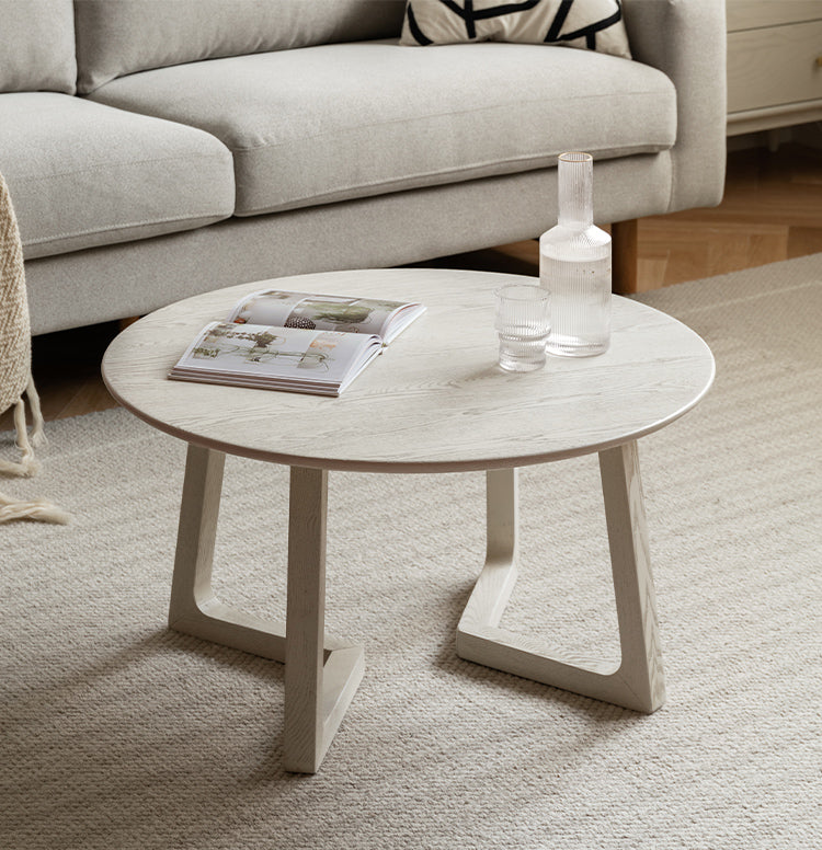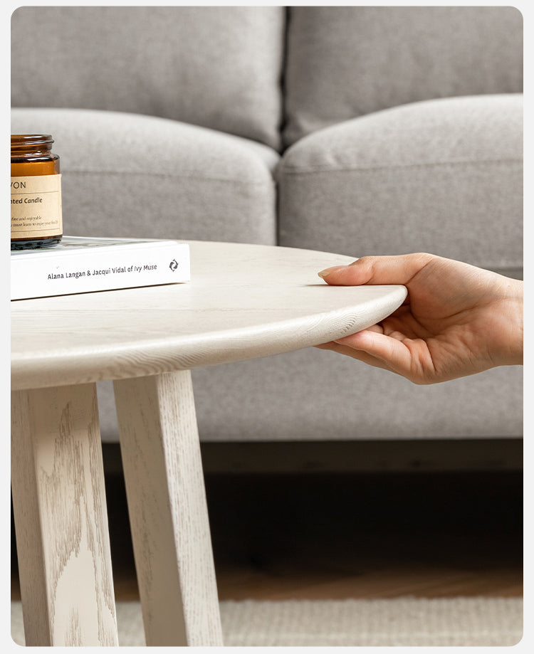 Bàn Trà Tròn Gỗ Sồi Sơn Trắng