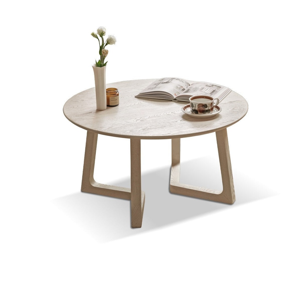 Bàn Trà Tròn Gỗ Sồi Sơn Trắng Đường Kính 75 Cao 40 (сm)