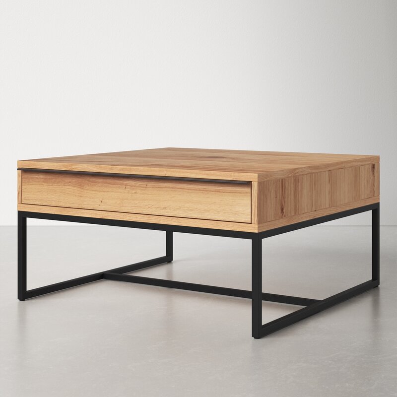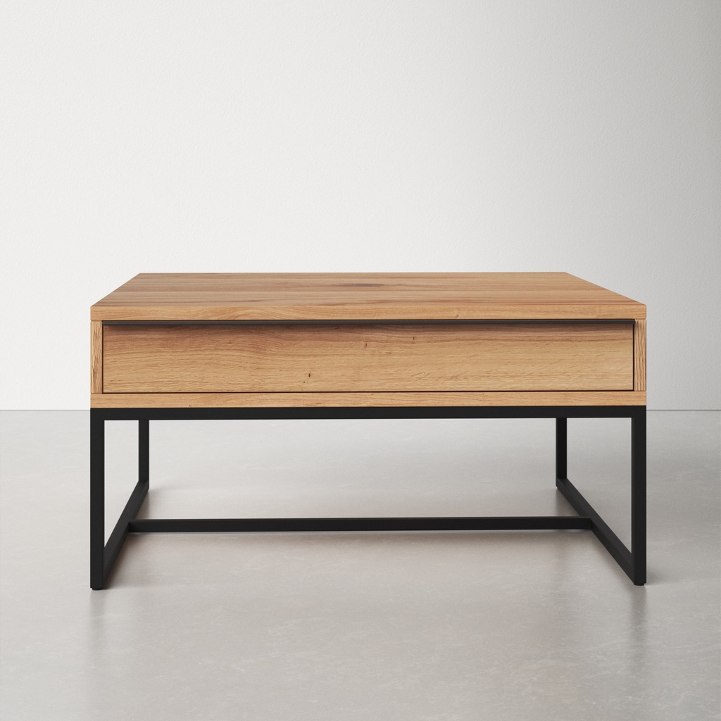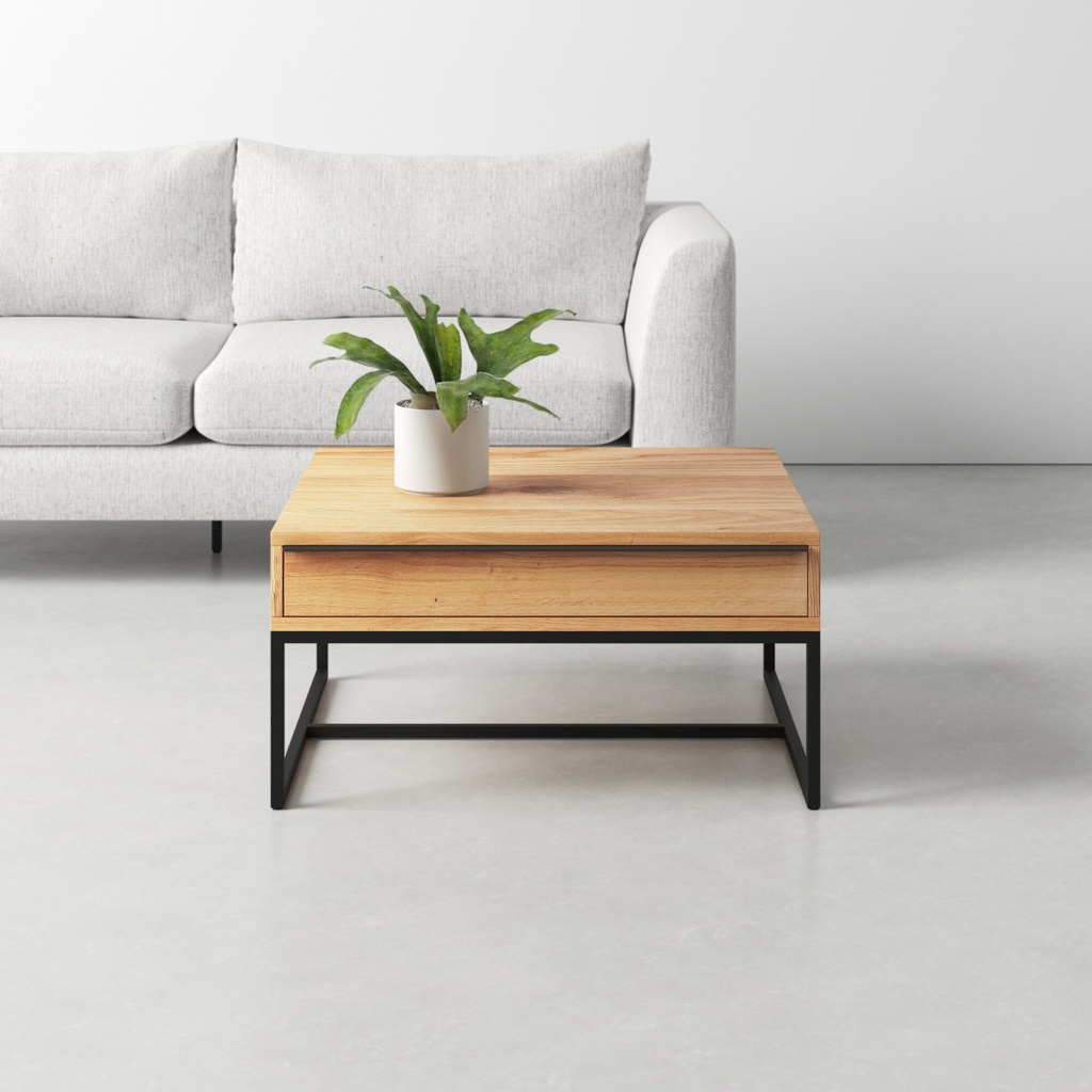 Bàn Trà Vuông Chân Sắt Gỗ Sồi Cao 41 Vuông 80 (cm)