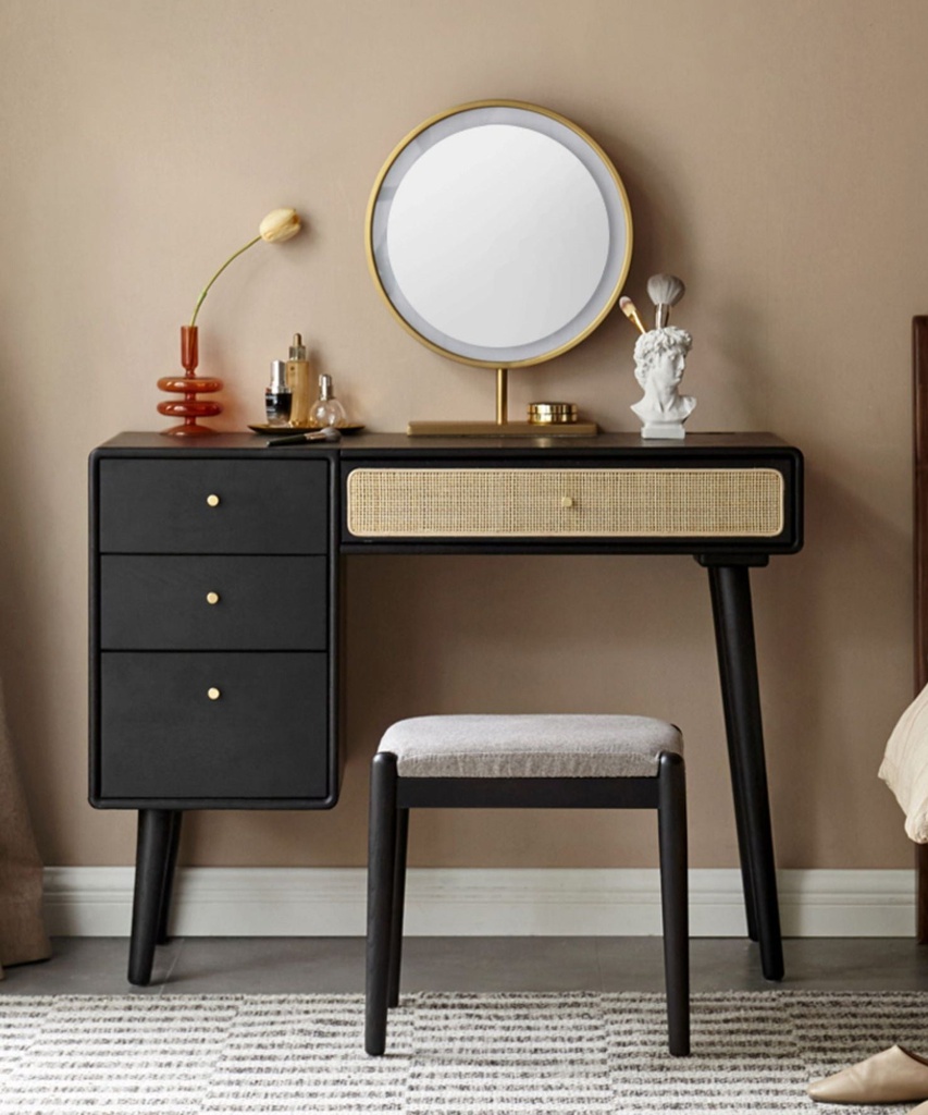 Bàn Trang Điểm Gỗ Sồi Sơn Đen