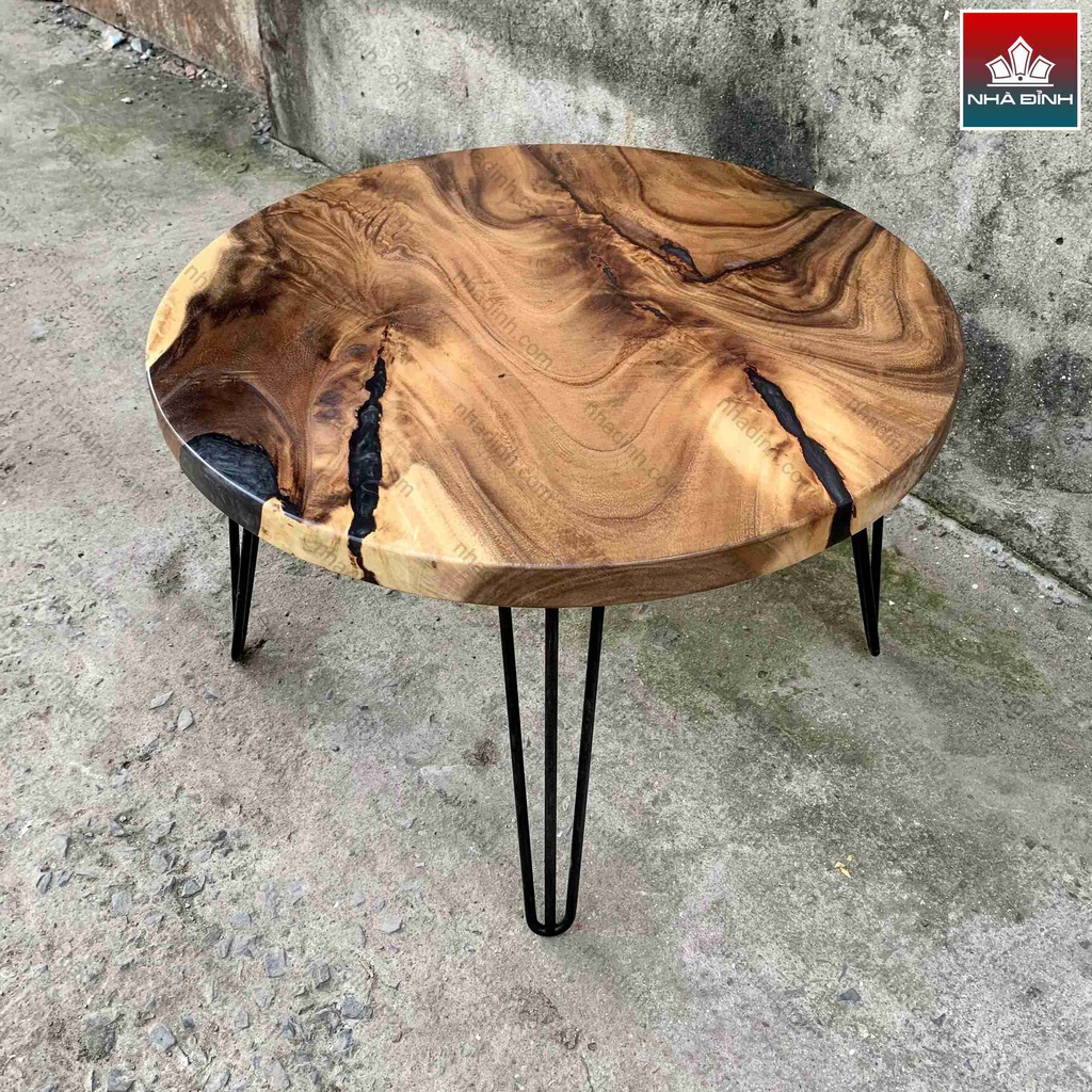 Bàn Tròn Epoxy Gỗ Me Tây Đường Kính 70 Dày 4 Cao 45 (cm)