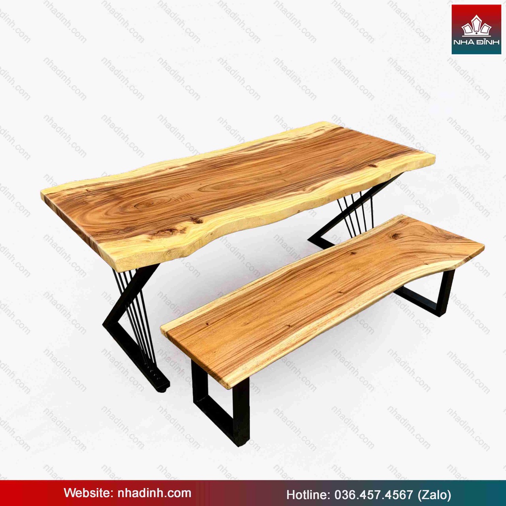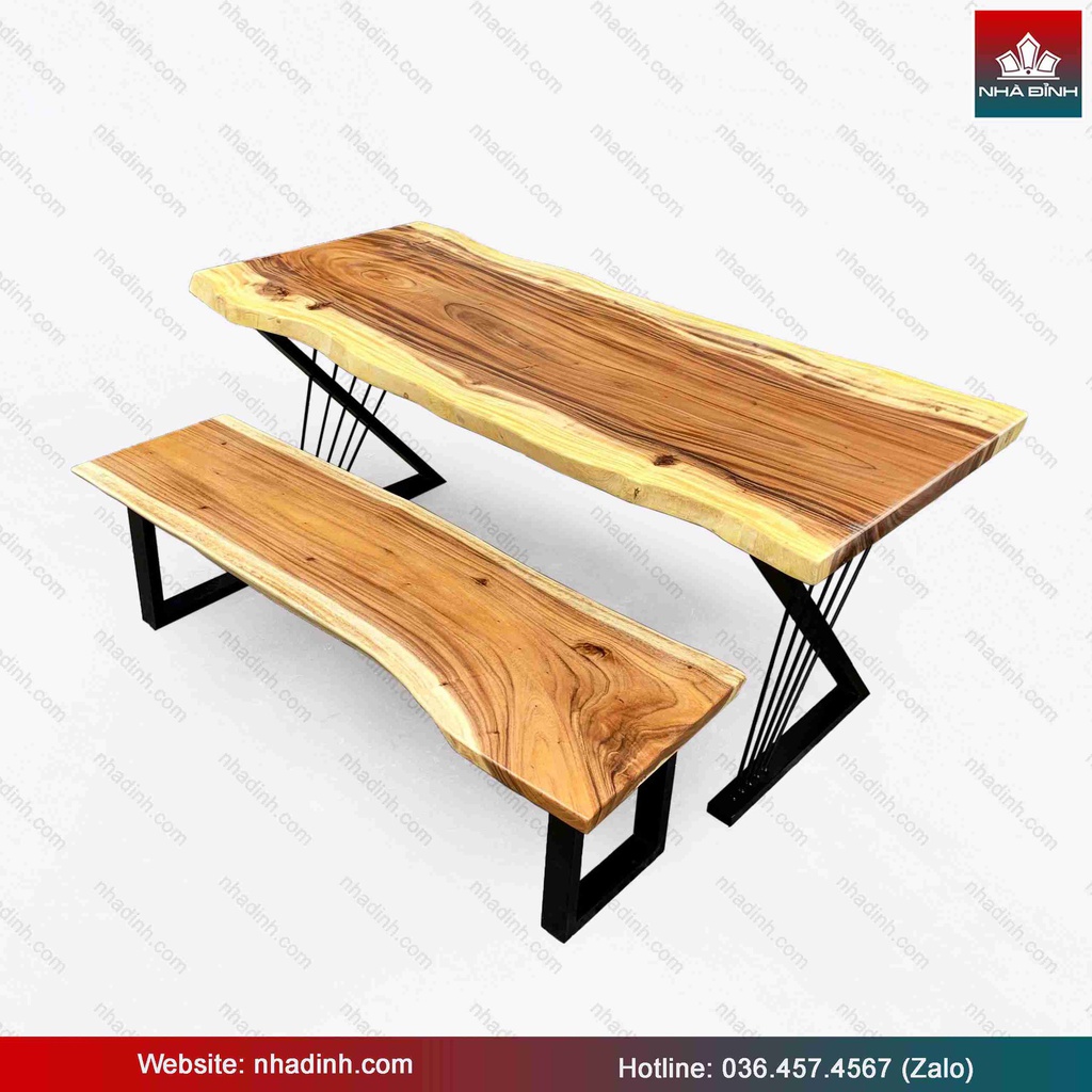 Bộ Bàn 1 Băng Gỗ Me Tây Nguyên Khối Dài 180 Rộng 82-78-79 Dày 4,8 (cm)