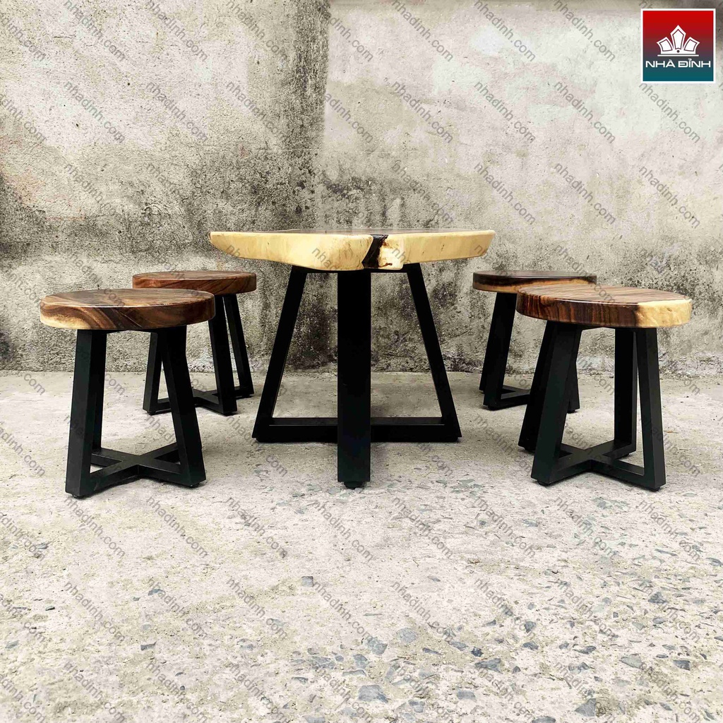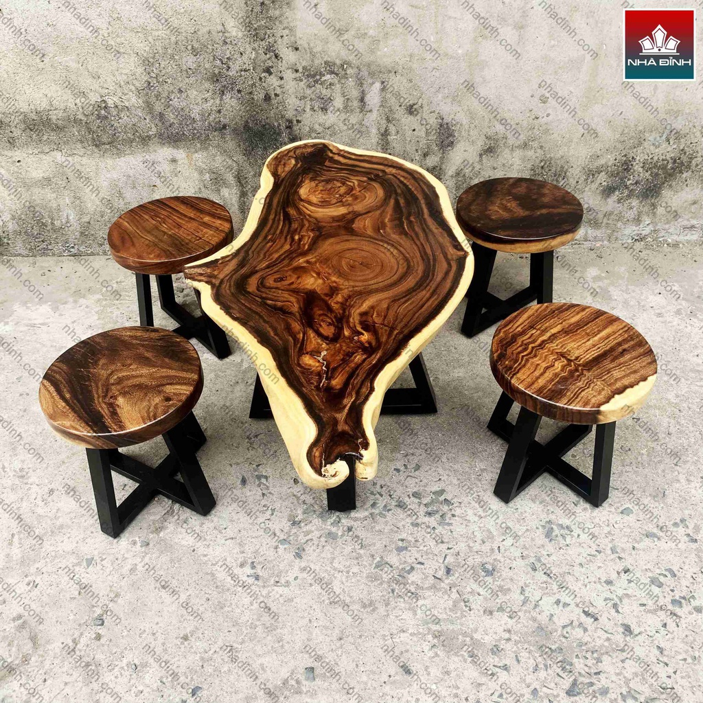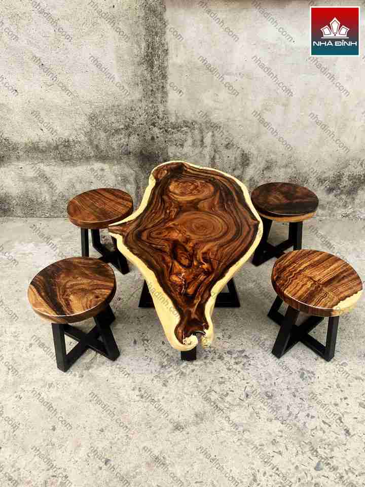 Bộ Bàn Ghế Uống Trà Gỗ Me Tây Nguyên Khối 1 Bàn 5 Ghế Đẩu