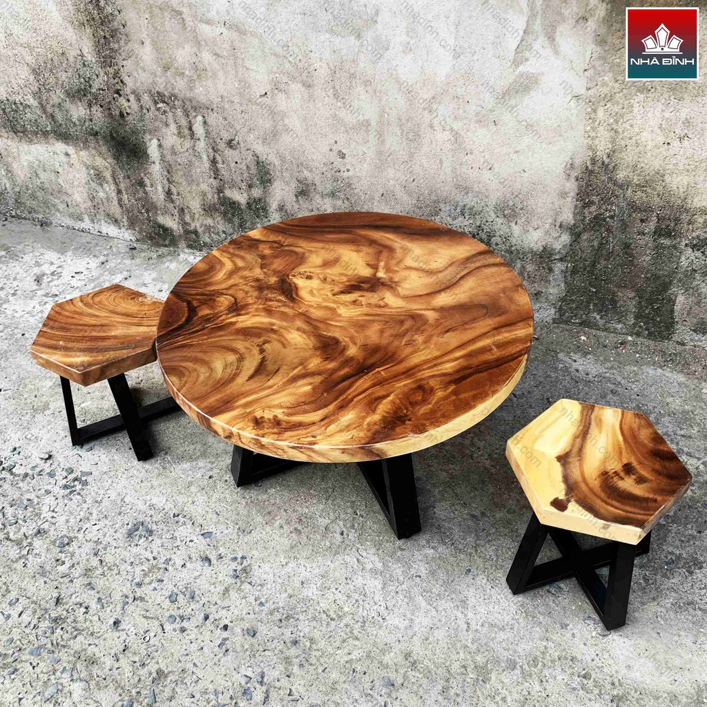 Bộ Bàn Trà 2 Ghế Gỗ Me Tây Đường Kính 80 (cm)