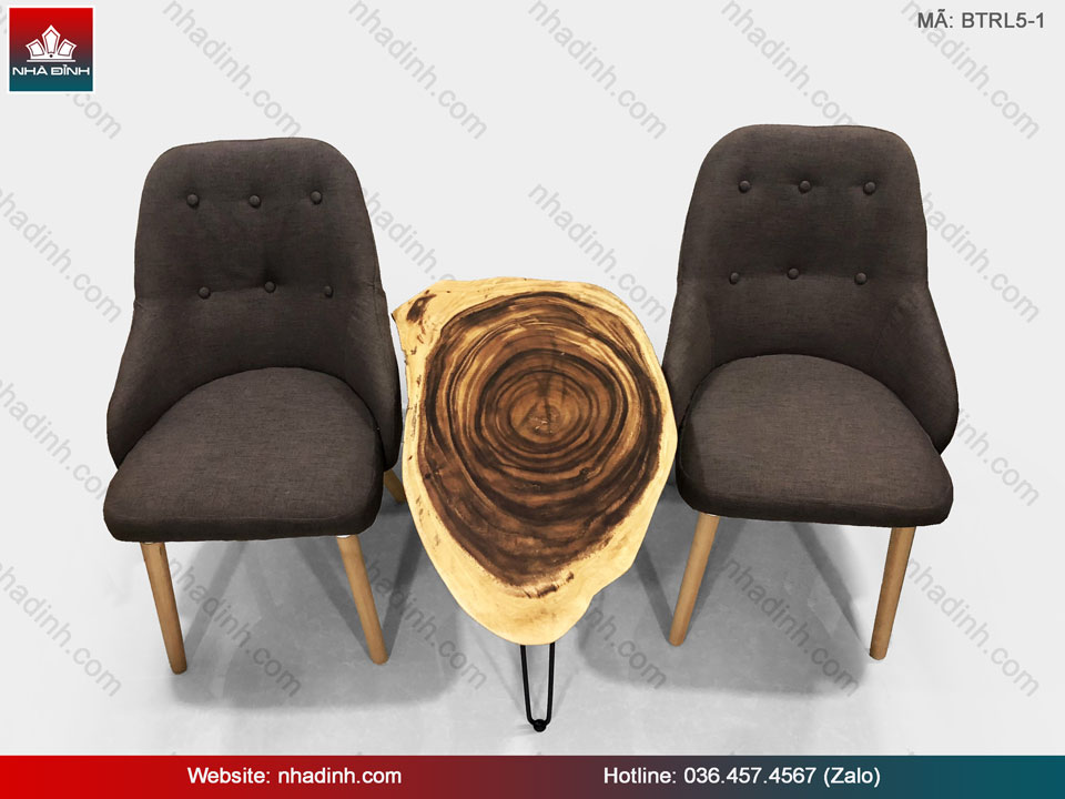 Bộ bàn trà 2 ghế gỗ Me Tây nguyên khối dài 90 rộng 50-47 dày 5,5 (cm)