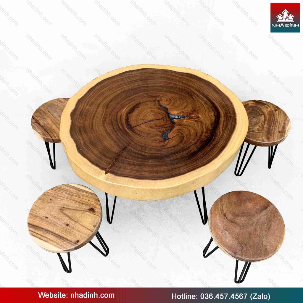 Bộ Bàn Trà 4 Ghế Gỗ Me Tây Rộng 71-80 Dày 8.5 Cao 58 (cm)