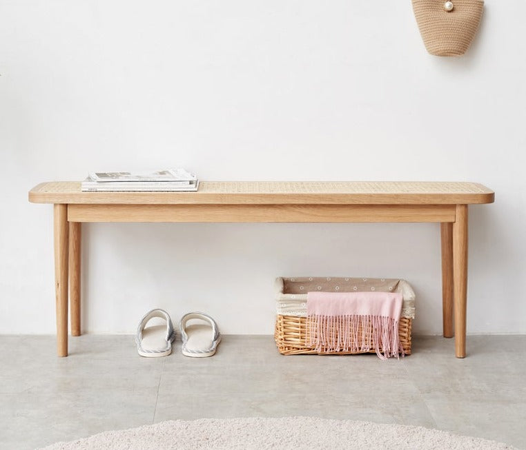 Ghế Băng Gỗ Sồi Mặt Lưới Mây