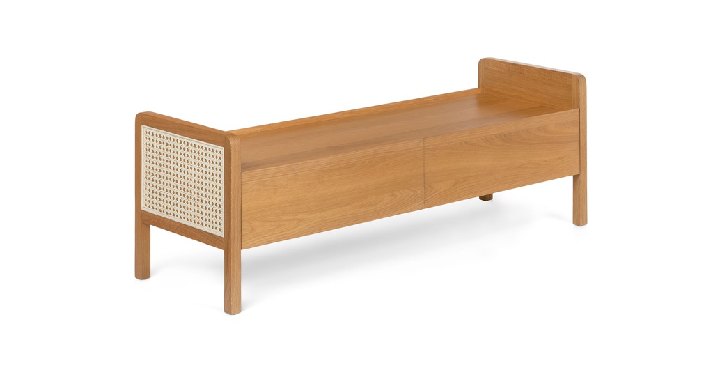 Ghế Đầu Giường Gỗ Sồi Kết Hợp Nệm Và Mây Dài 145 Rộng 44 Cao 45 (cm)
