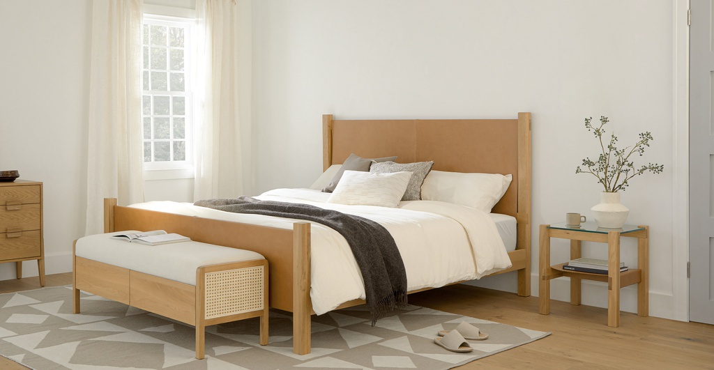 Chất liệu: Gỗ Sồi (Oak) + Mây + Venner Sồi + Nệm