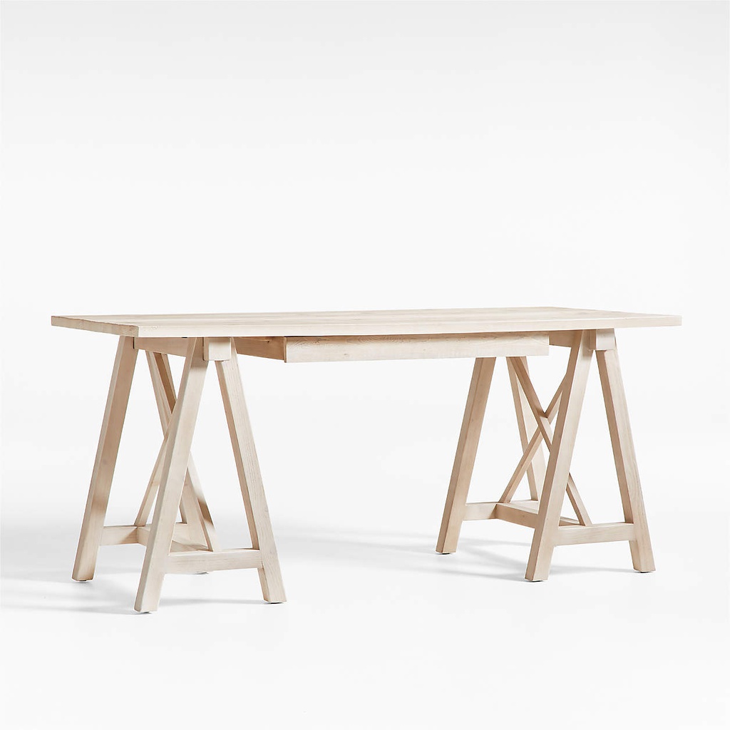 Bàn Làm Việc Gỗ Thông Sơn Trắng