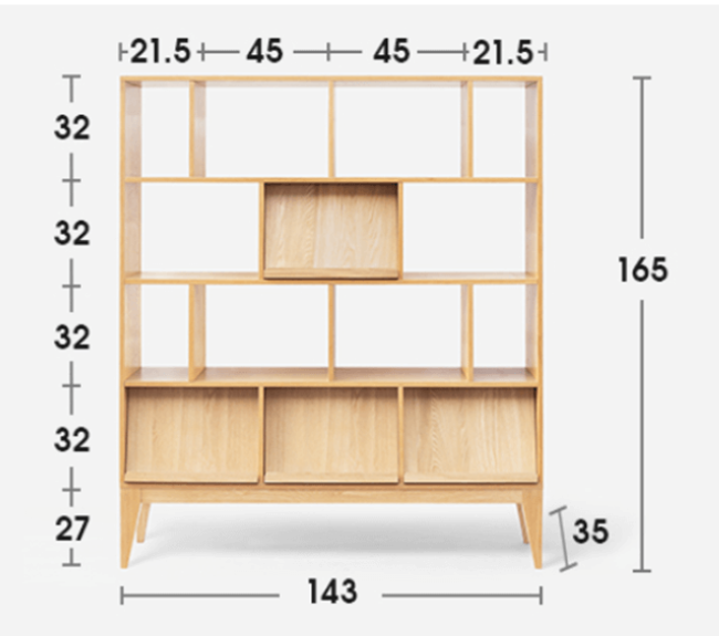 Kệ Sách Gỗ Tần Bì Cao 165 Rộng 143 Sâu 35 (cm)