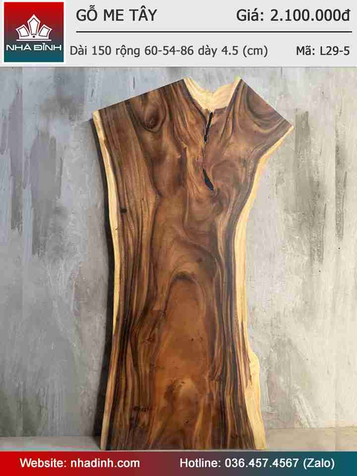 Mặt Bàn Ăn Gỗ Me Tây Nguyên Khối Dài 150 Rộng 60-54-86 Dày 4,5 (cm)