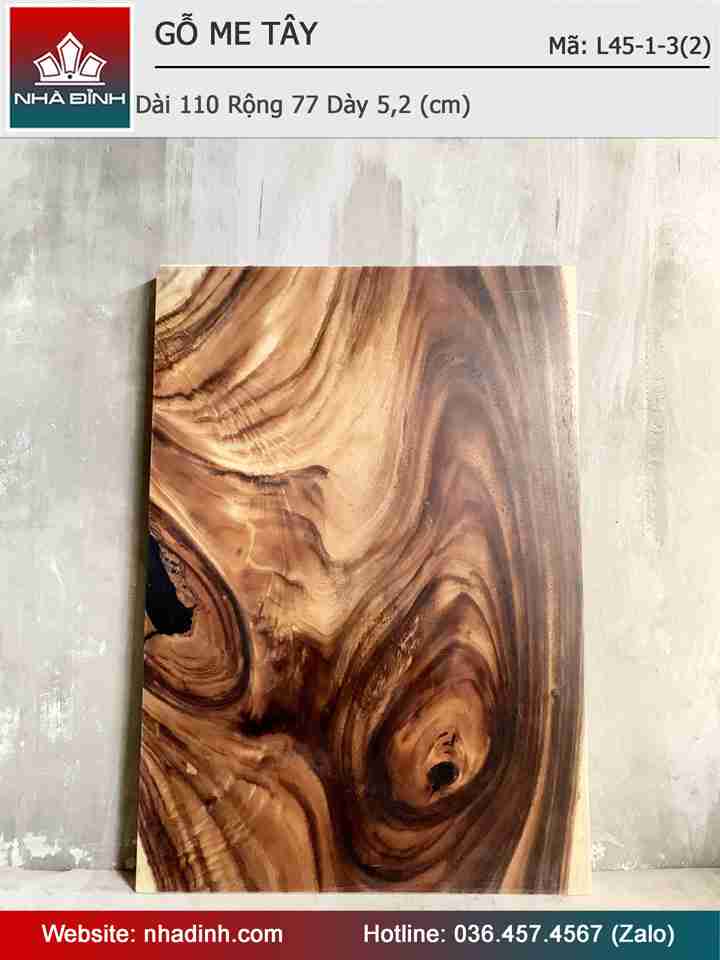 Mặt Bàn Gỗ Me Tây Nguyên Khối Dài 110 Rộng 77 Dày 5,2 (cm)