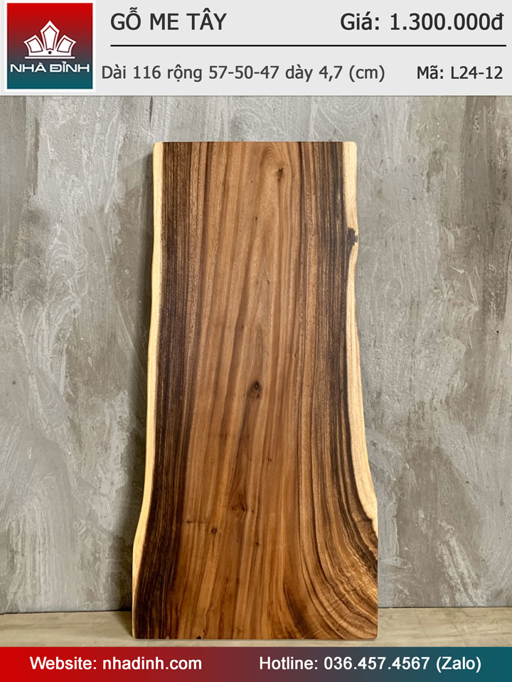 Mặt Bàn Gỗ Me Tây Nguyên Khối Dài 116 Rộng 57-50-47 Dày 4,7 (cm)