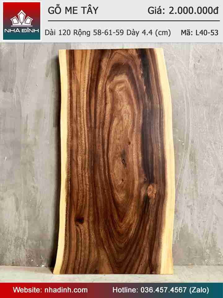 Mặt Bàn Gỗ Me Tây Nguyên Khối Dài 120 Rộng 58-61-59 Dày 4,4 (cm)