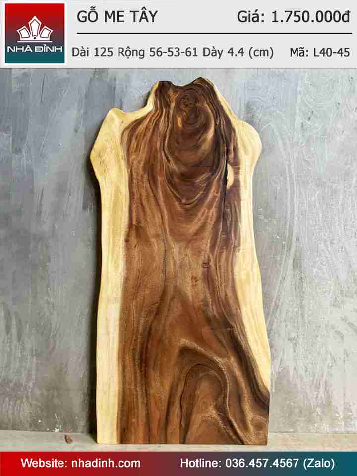 Mặt Bàn Gỗ Me Tây Nguyên Khối Dài 125 Rộng 56-53-61 Dày 4,4 (cm)