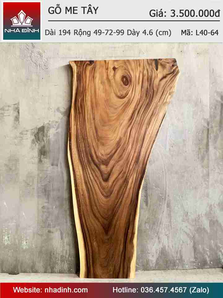 Mặt Bàn Gỗ Me Tây Nguyên Khối Dài 194 Rộng 49-72-99 Dày 4,6 (cm)