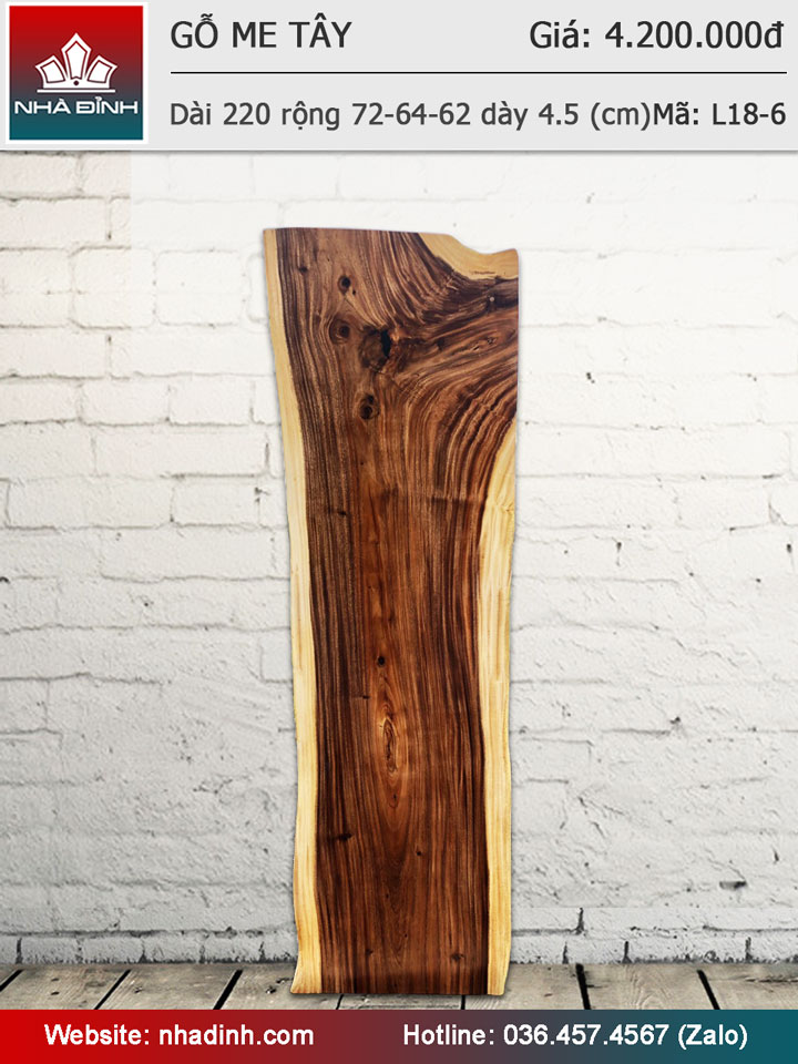 Mặt bàn gỗ Me Tây nguyên khối dài 220 rộng 72-64-62 dày 4,5 (cm)