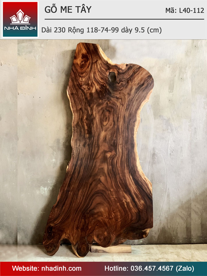 Mặt Bàn Gỗ Me Tây Nguyên Khối Dài 230 Rộng 118-74-99 Dày 9,5 (cm)