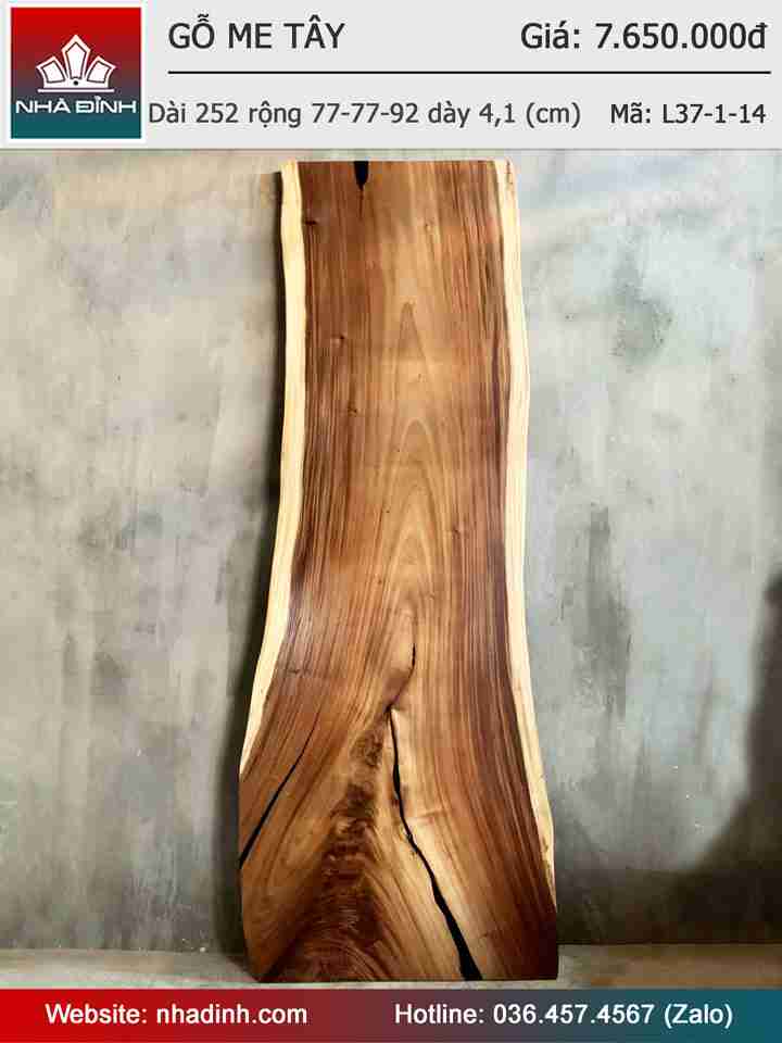 Mặt Bàn Gỗ Me Tây Nguyên Khối Dài 252 Rộng 77-77-92 Dày 4,1 (cm)