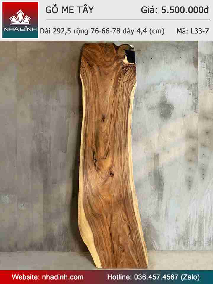 Mặt Bàn Gỗ Me Tây Nguyên Khối Dài 292,5 Rộng 76-66-78 Dày 4,4 (cm)