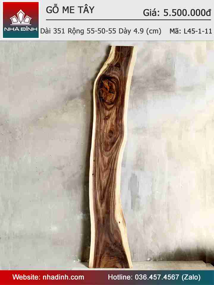 Mặt Bàn Gỗ Me Tây Nguyên Khối Dài 351 Rộng 55-50-55 Dày 4,9 (cm)