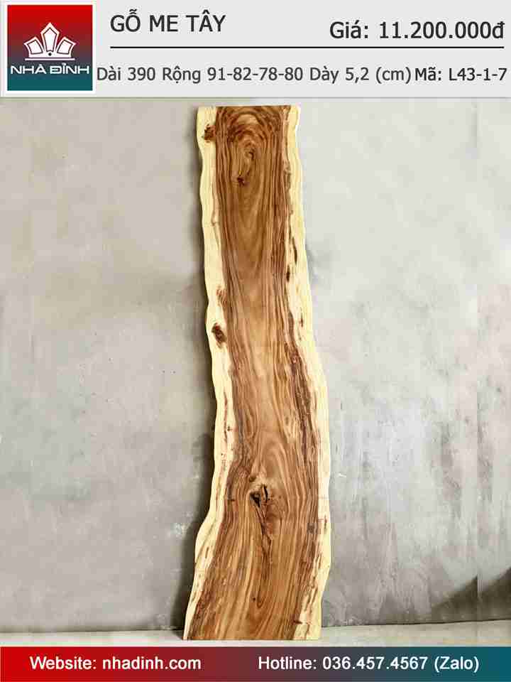 Mặt Bàn Gỗ Me Tây Nguyên Khối Dài 390 Rộng 91-82-78-80 Dày 5,2 (cm)