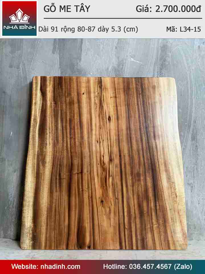 Mặt Bàn Gỗ Me Tây Nguyên Khối Dài 91 Rộng 80-87 Dày 5,3 (cm)
