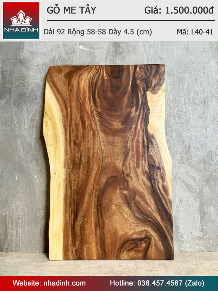 Mặt Bàn Gỗ Me Tây Nguyên Khối Dài 92 Rộng 58-58 Dày 4,5 (cm)