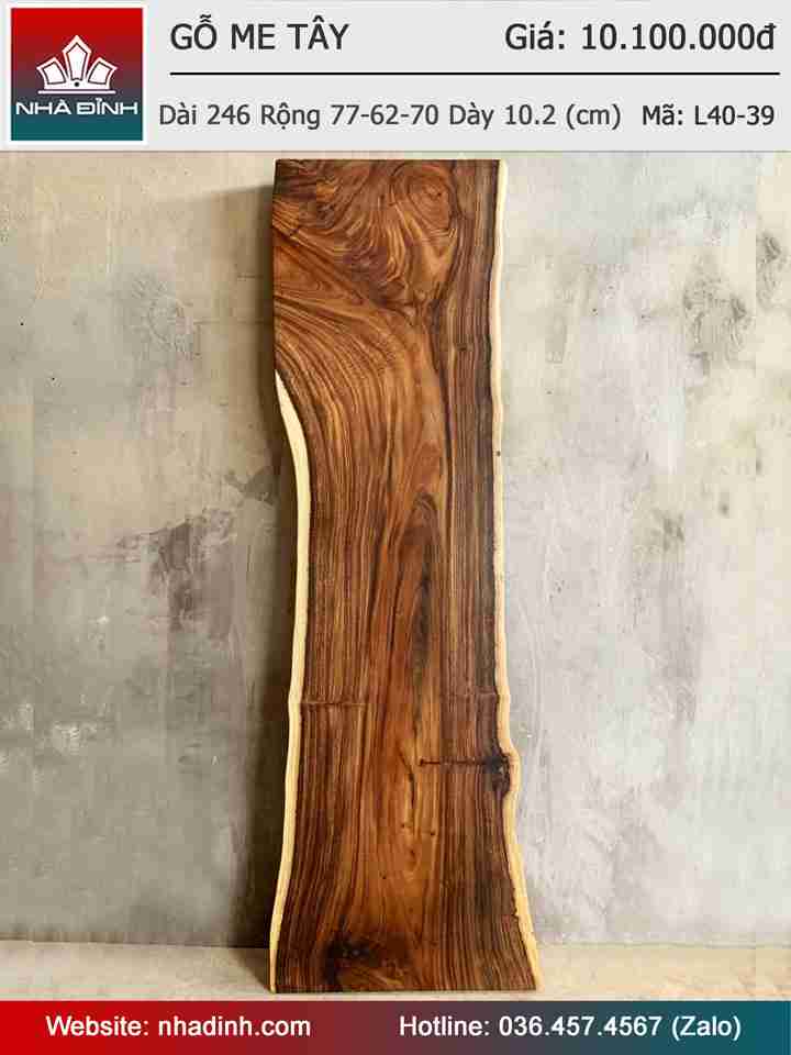 Mặt Bàn Gỗ Me Tây Nguyên Khối Dày 246 Rộng 77-62-70 Dày 10,2 (cm)