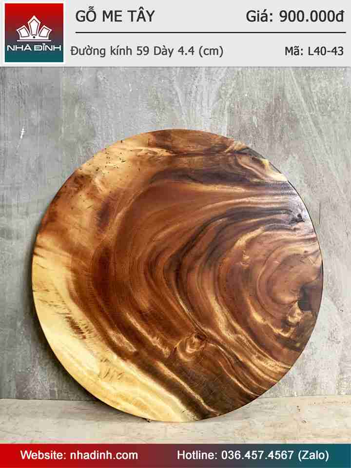 Mặt Bàn Gỗ Me Tây Nguyên Khối Đường Kính 59 Dày 4,4 (cm)
