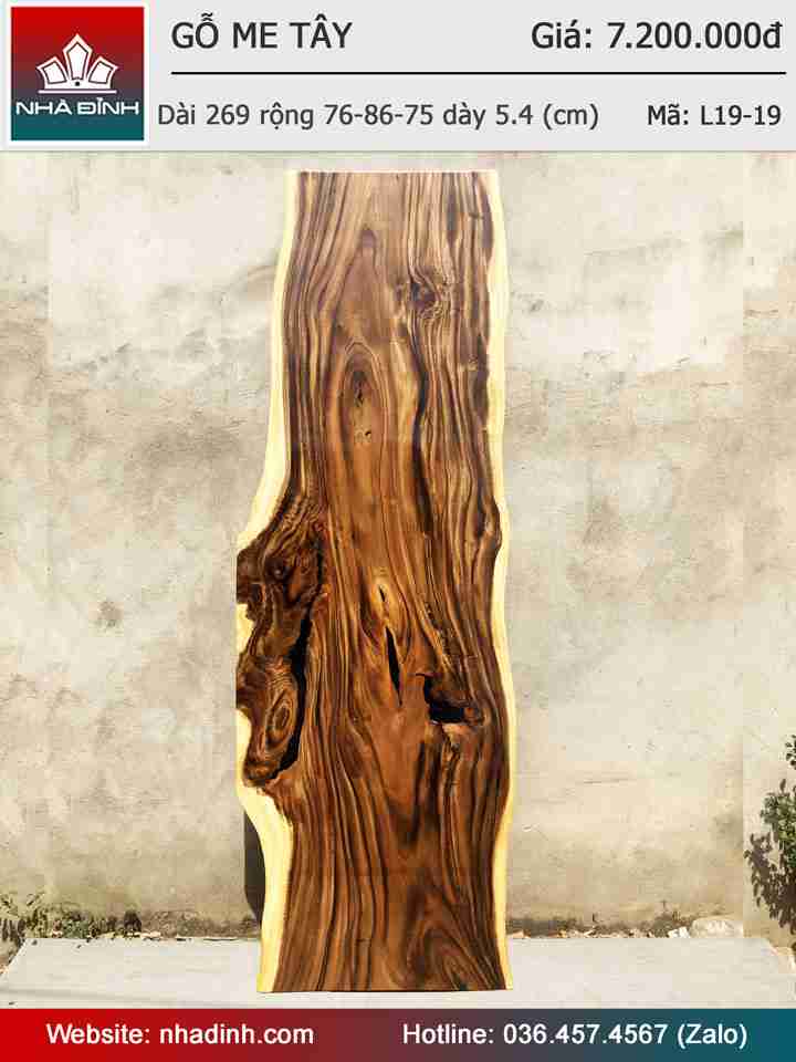 Mặt Bàn Gỗ Me Tây Nguyên Tấm Dài 269 Rộng 76-86-75 Dày 5,4 (cm)
