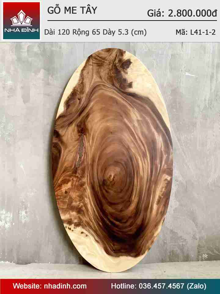 Mặt Bàn Oval Gỗ Me Tây Nguyên Khối Dài 120 Rộng 65 Dày 5,3 (cm)