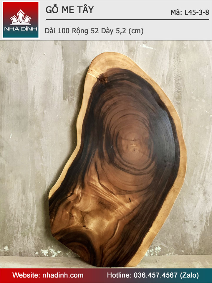 Mặt Bàn Trà Gỗ Me Tây Nguyên Khối Dài 100 Rộng 52 Dày 5,2 (cm)