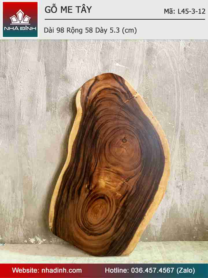 Mặt Bàn Trà Gỗ Me Tây Nguyên Khối Dài 98 Rộng 58 Dày 5,3 (cm)