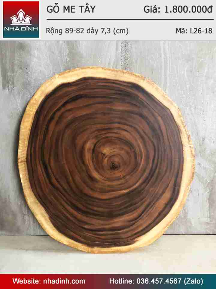 Mặt Bàn Trà Gỗ Me Tây Nguyên Khối Rộng 89-82 Dày 7,3 (cm)