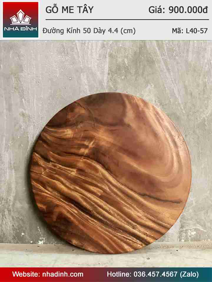 Mặt Bàn Tròn Gỗ Me Tây Nguyên Khối Đường Kính 50 Dày 4,4 (cm)